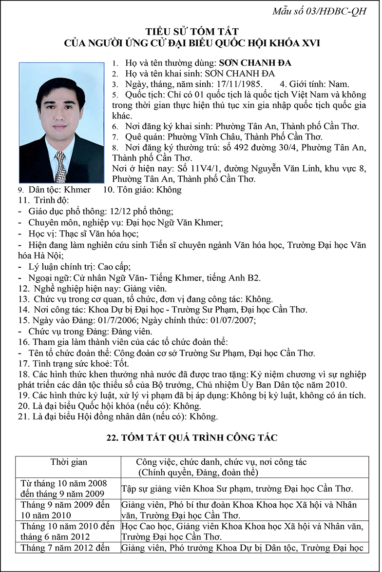 Ông Sơn Chanh Đa – Giảng viên Khoa Dự bị Đại học, Trường Sư phạm, Đại học Cần Thơ | Đơn vị bầu cử số 3