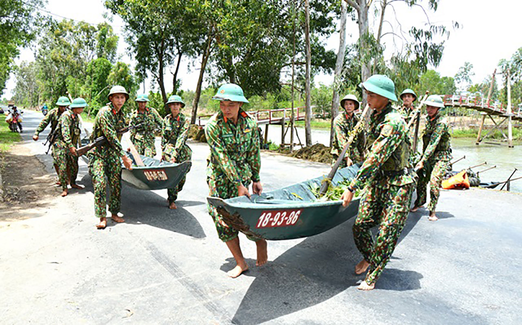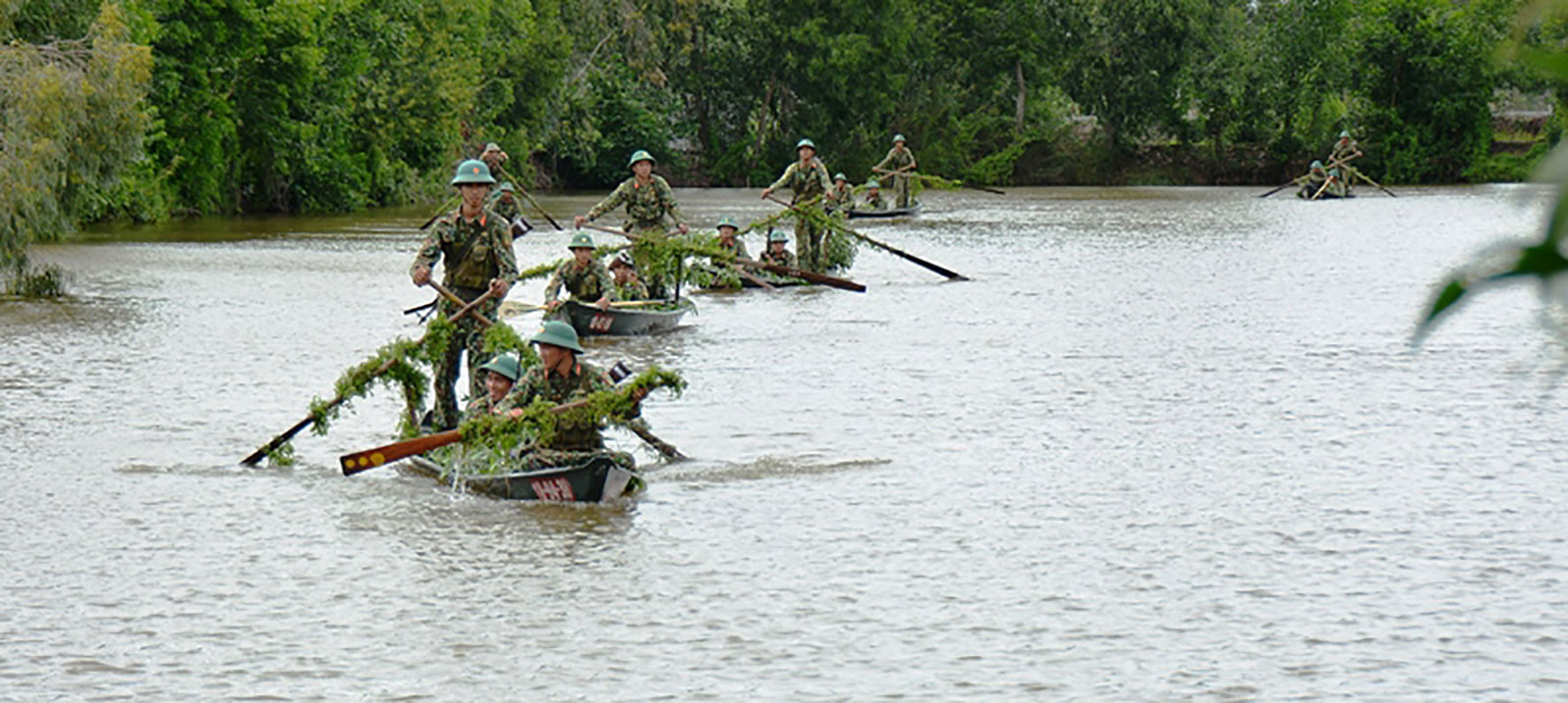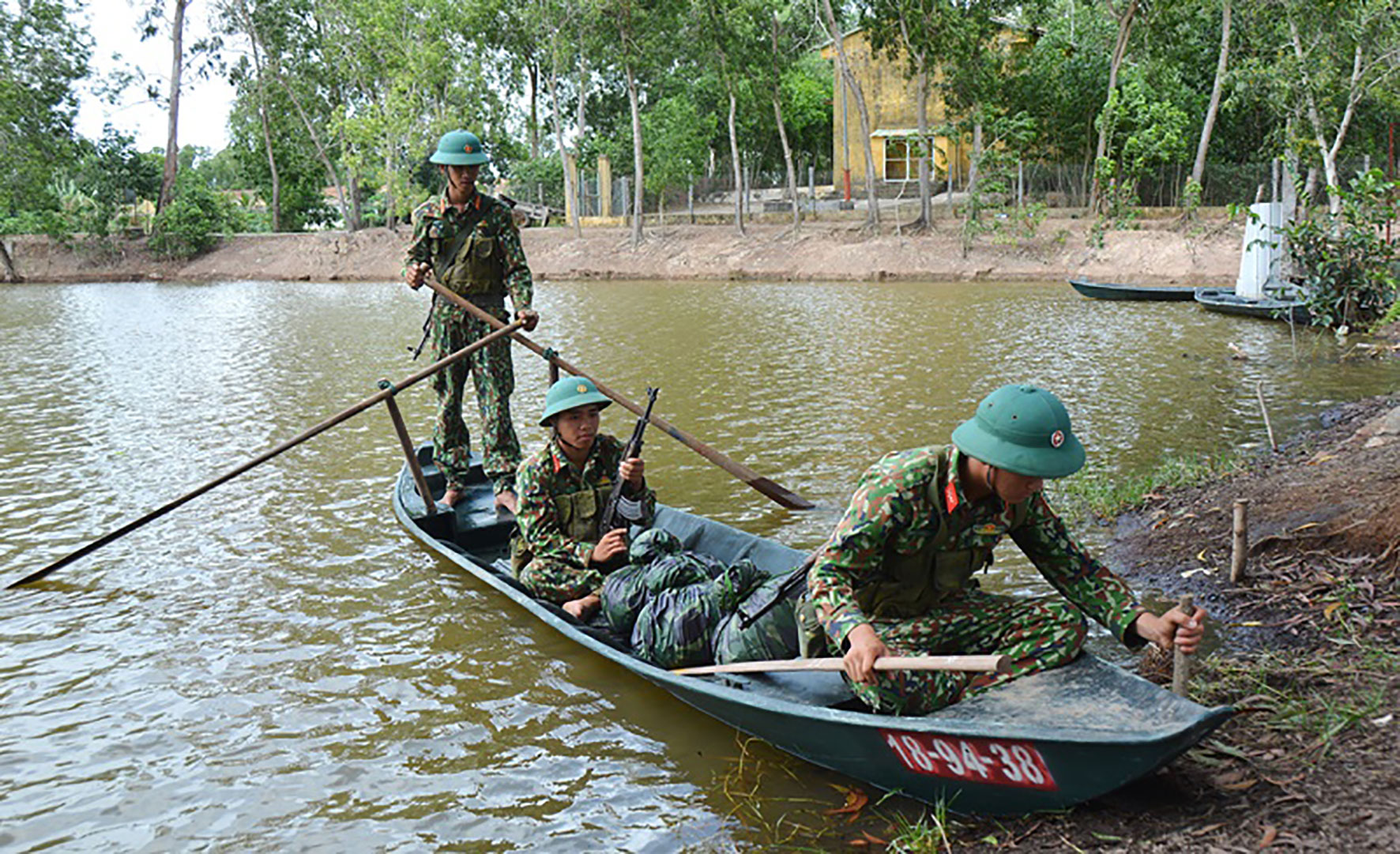 Các bài tập sẽ được nâng dần về độ khó. Từ đi người không đến mang vác vũ khí trang bị; lên, xuống và bơi, chèo xuồng trong khu vực ao hồ, sông ngòi; khu vực có dòng chảy mạnh, sóng, gió lớn… Trên xuồng 3 đồng chí, ai cũng phải thực hiện được động tác, yếu lĩnh tốt thì mới bảo đảm được cự ly, đội hình. Không chỉ thành thạo kỹ thuật bơi chèo xuồng cơ bản, đơn vị còn huấn luyện nhiều tình huống như chuyển trạng thái từ hành quân sang sẵn sàng chiến đấu. Kỹ năng này sẽ giúp cho bộ đội luôn bảo đảm