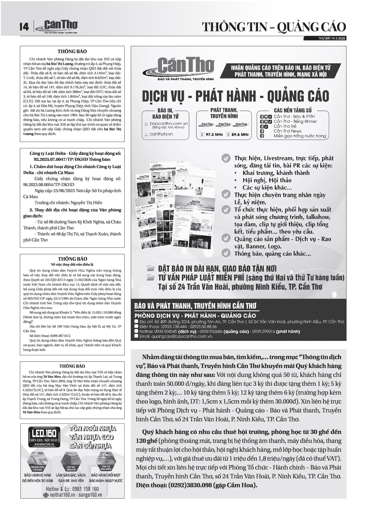 Bảng giá quảng cáo